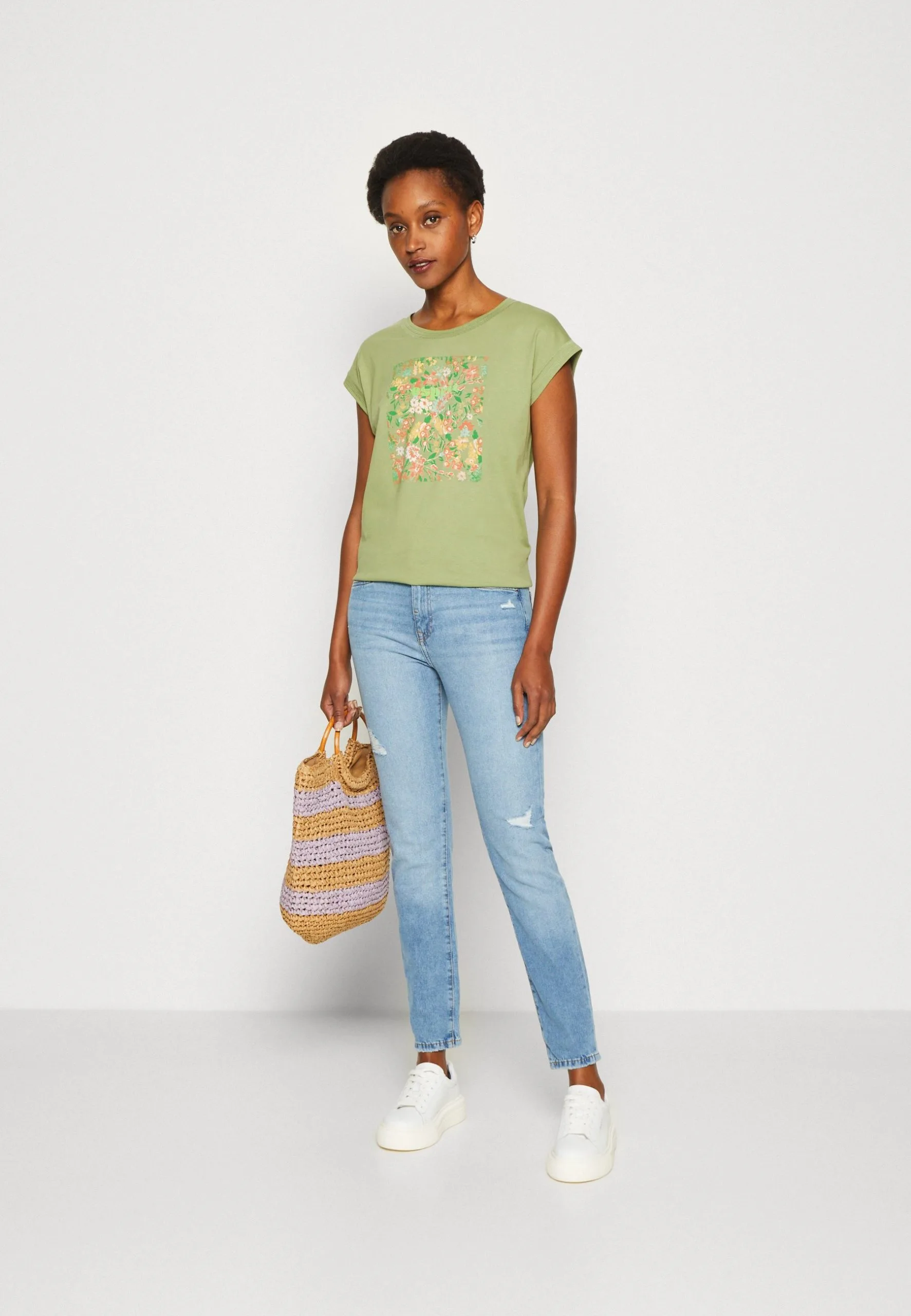 ESPRIT Stitch Detail – T-Shirts Med Print – Pistachio Green